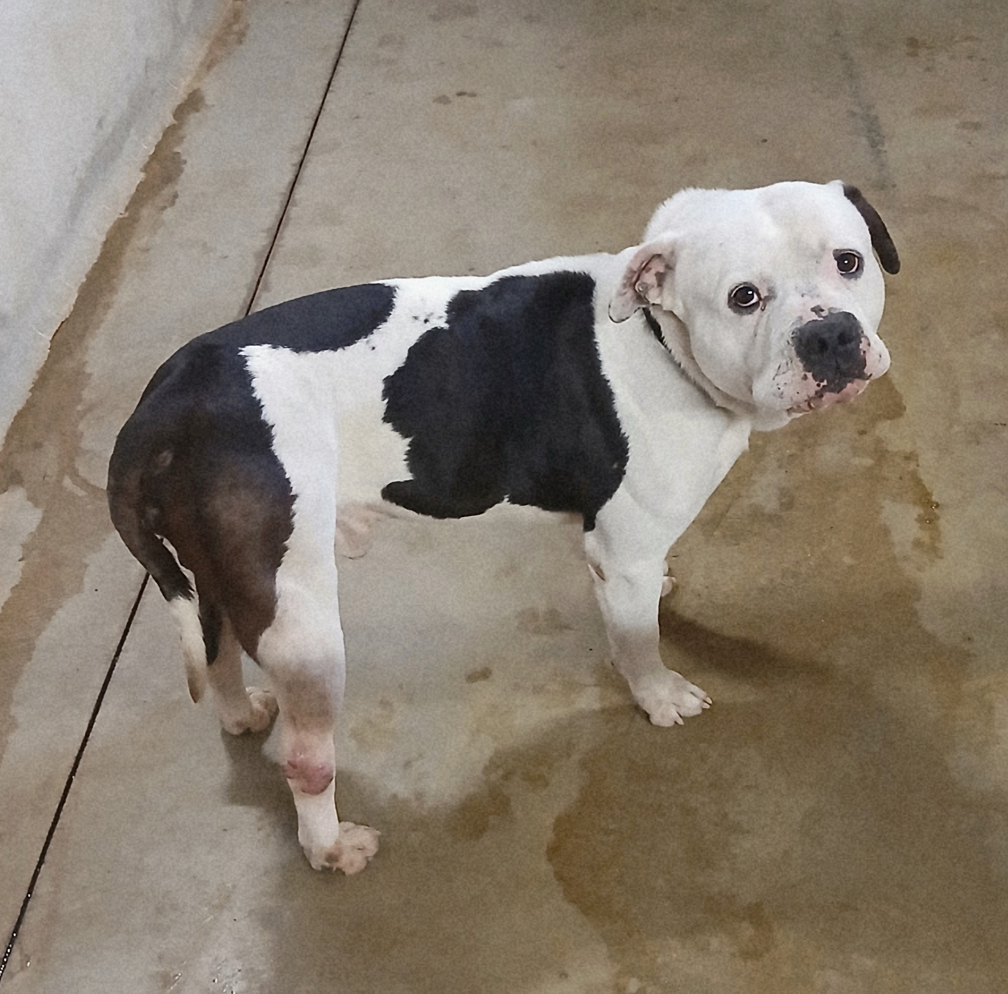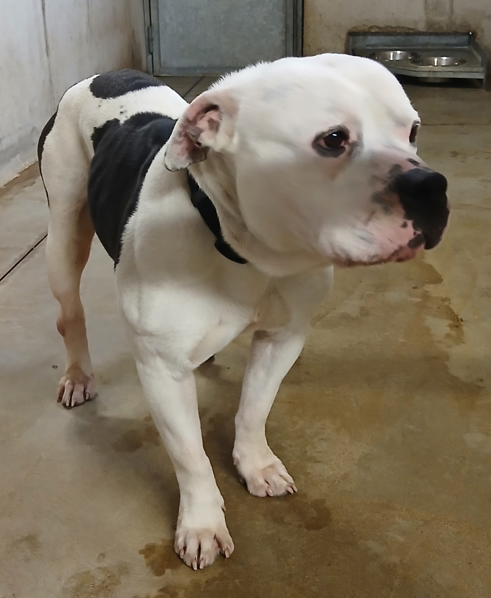 Ce chien de type American Staffordshire Terrier a été recueilli dans les environs proches de la commune.