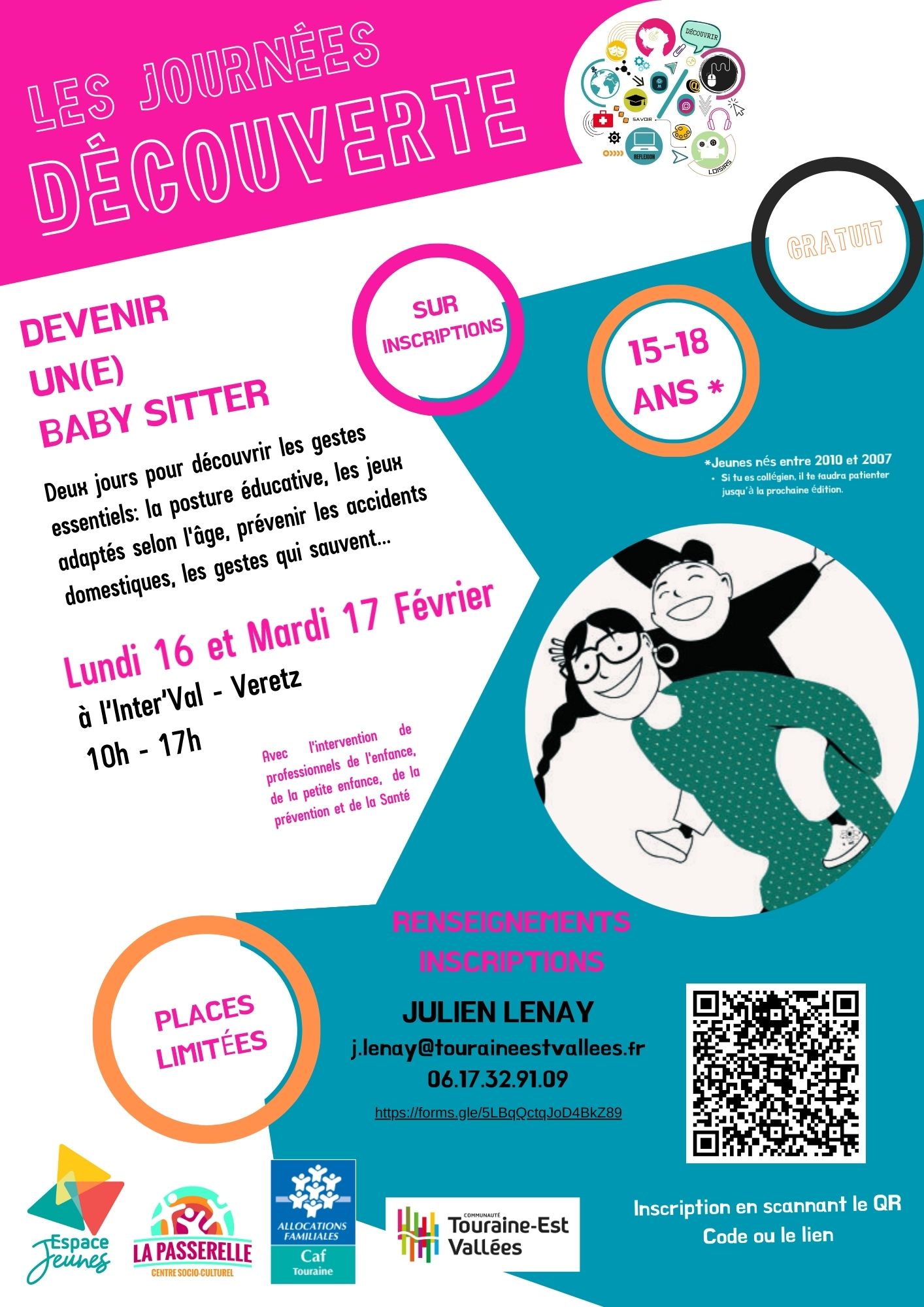 Si vous avez entre 15 et 18 ans, participez aux deux journées de formation pour tout savoir sur le baby-sitting : la posture éducative, les jeux adaptés selon l’âge, prévenir les accidents domestiques, les gestes qui sauvent…