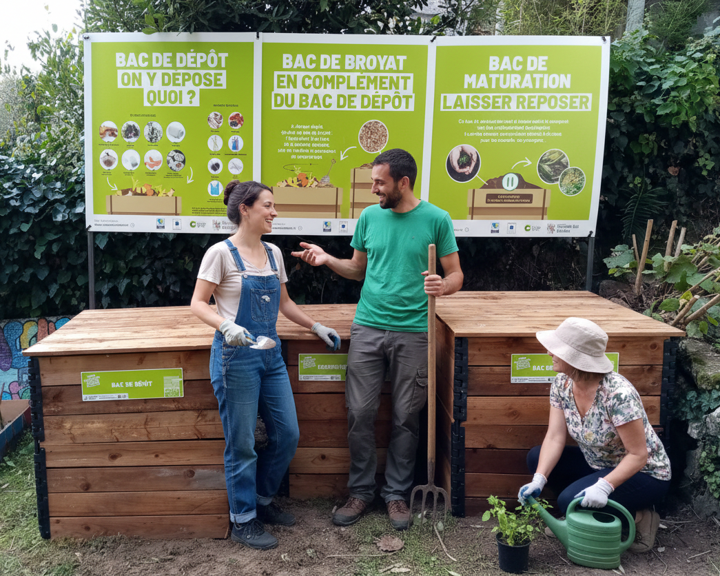 - 1 composteur en bois de 800L pour les dépôts de biodéchets