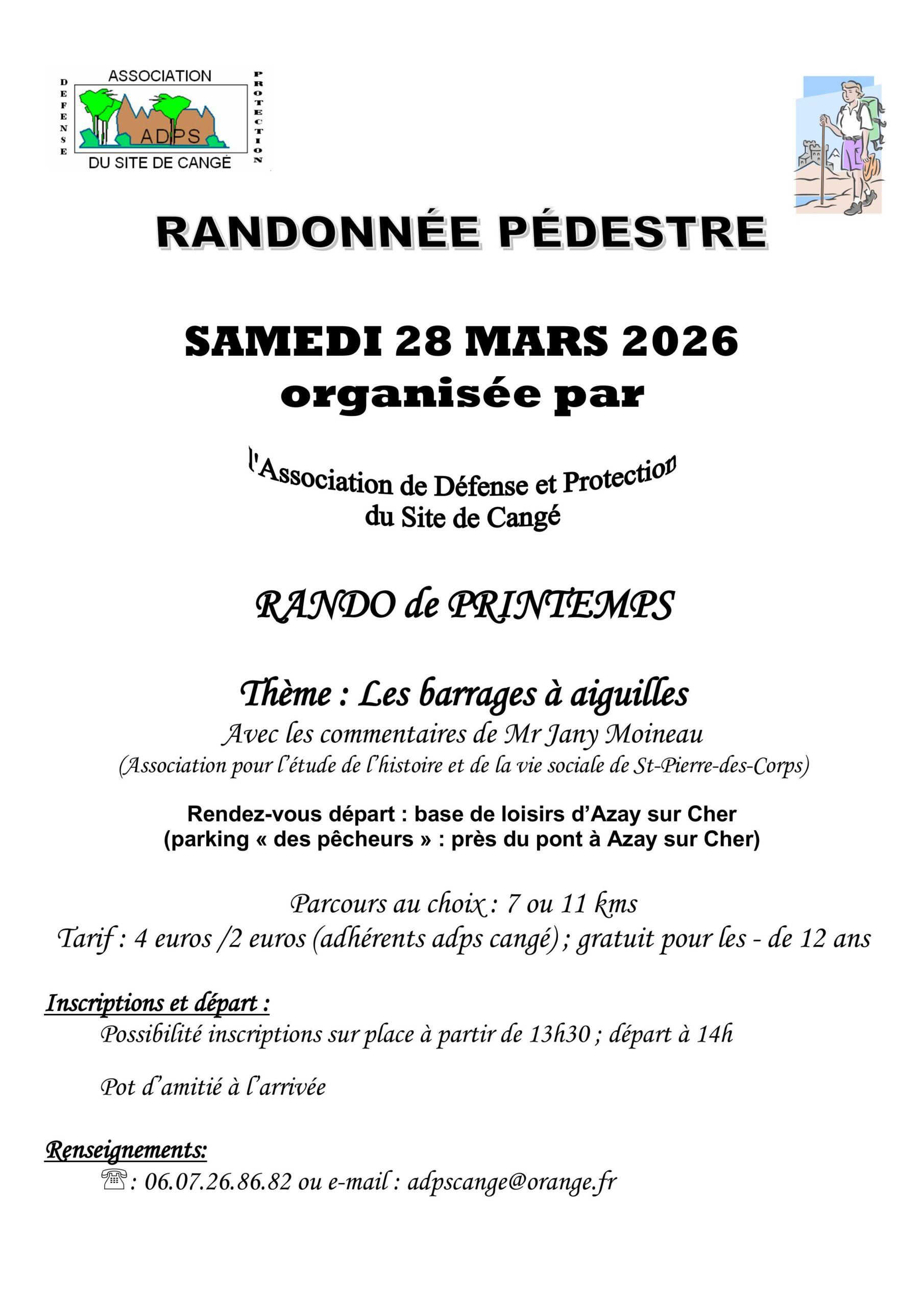 L’Association de Défense et Protection du Site de Cangé (Saint-Avertin) organise sa randonnée pédestre de printemps le samedi 28 mars 2026 au départ d’Azay-sur-Cher.