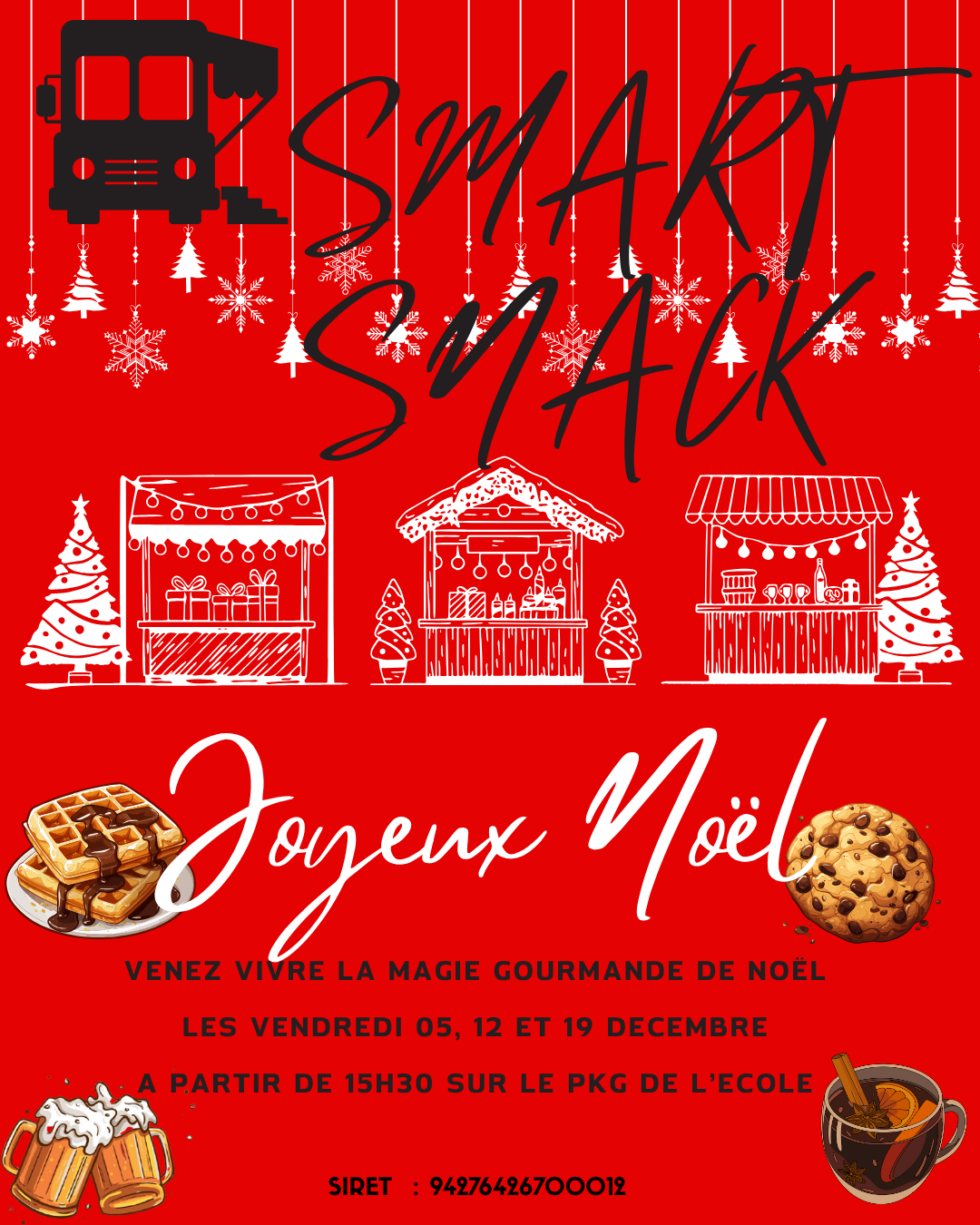 Avec son food-truck Smart & Snack, Linda sera présente les vendredis 5, 12 et 19 décembre à partir de 15h30 sur le parking de l’école pour régaler petits et grands.