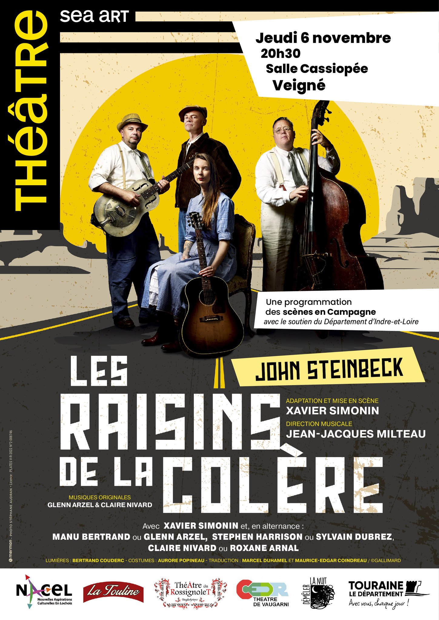 Le jeudi 6 novembre à 20h30, la salle Cassiopée de Veigné accueillera l’adaptation théâtrale et musicale du roman mythique de Steinbeck, portée pour la première fois sur scène.